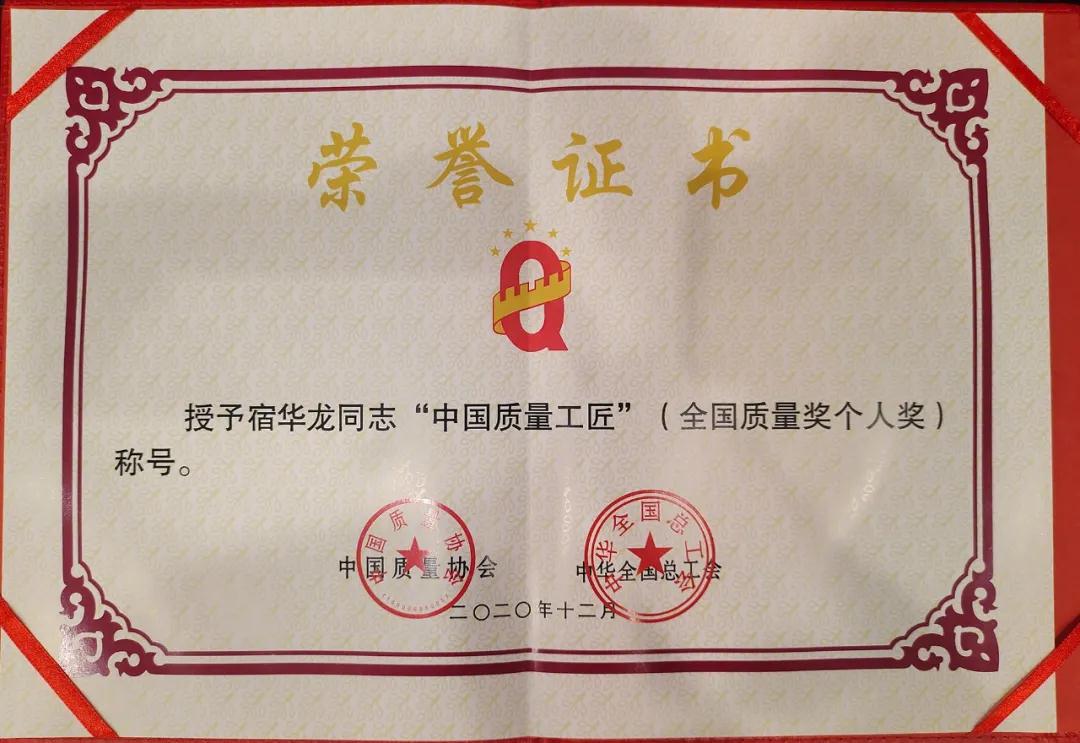 兵器工業集團宿華龍榮獲第十九屆全國質量獎“中國質量工匠”稱號