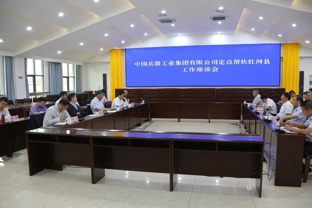 5月28日,劉大山與紅河州、紅河縣有關負責人進行了座談,聽取紅河縣脫貧攻堅整體情況介紹,舉行幫扶項目分紅儀式。紅河州州委副書記盛高舉、紅河縣委書記張智俊對兵器工業集團18年來給予紅河縣真扶貧、扶真貧的大量實際幫助表示由衷敬意與感謝,指出對紅河的幫扶充分體現了兵器工業集團的政治擔當和對邊疆人民的深情厚誼,希望在產業扶貧、就業扶貧、消費扶貧等方面繼續對紅河縣給予大力支持。