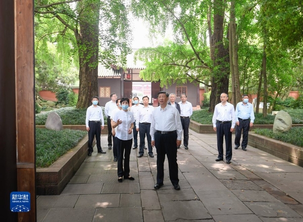 6月8日,中共中央總書記、國家主席、中央軍委主席習近平在四川考察。這是8日上午,習近平在眉山市三蘇祠考察。新華社記者 申宏 攝